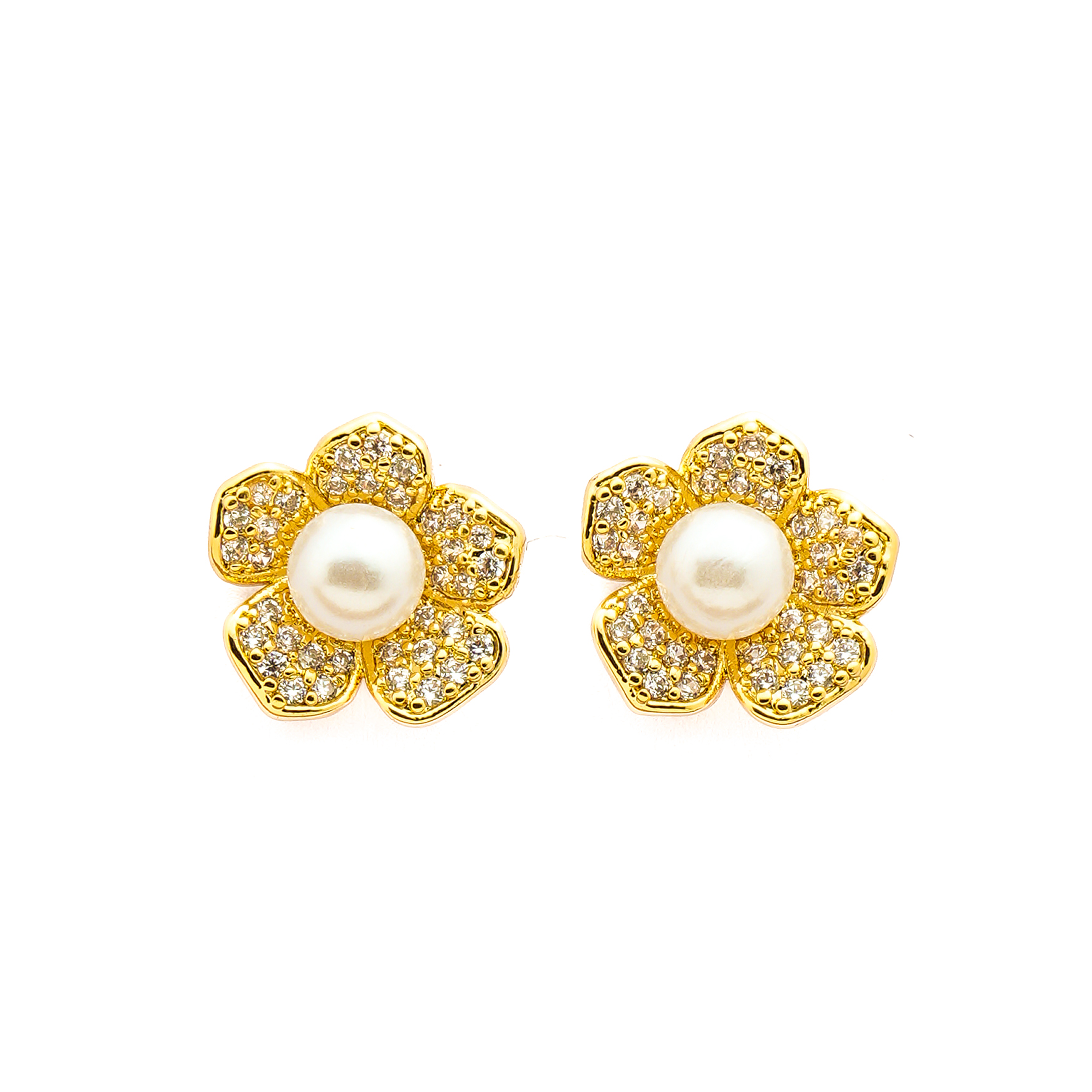 Delicate floral studs with a luminous pearl center and sparkling crystal petals. These earrings are timelessly elegant, radiating grace and charm with every wear — ideal for weddings or everyday glamour.